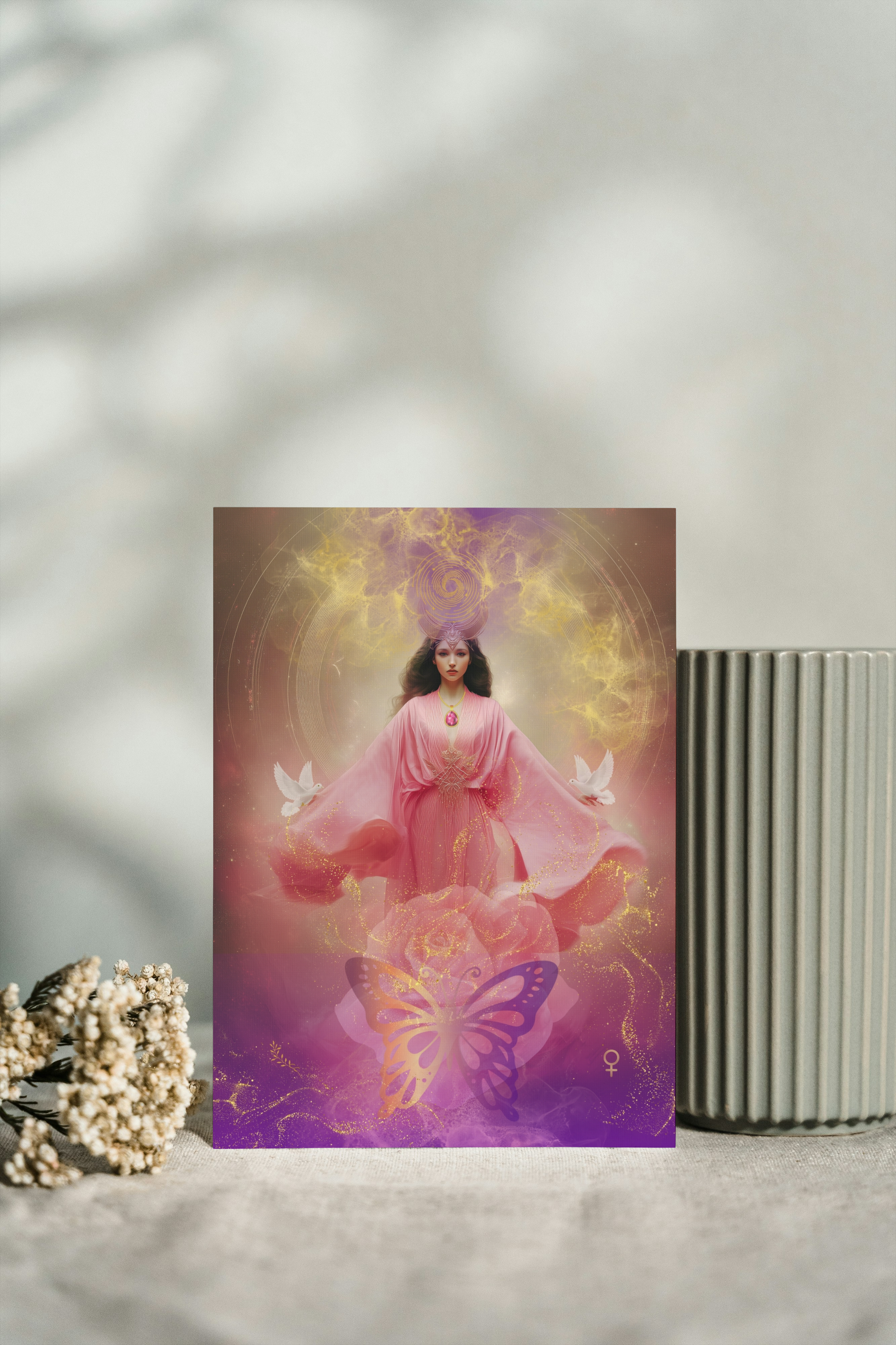 The images on the altar cards are my creative vision on universal Feminine archetypes symbols, inspired by mythologies and traditions worldwide. They are for personal reflection and rituals, not to misinterpret, copy or replace any culture's spiritual practices.